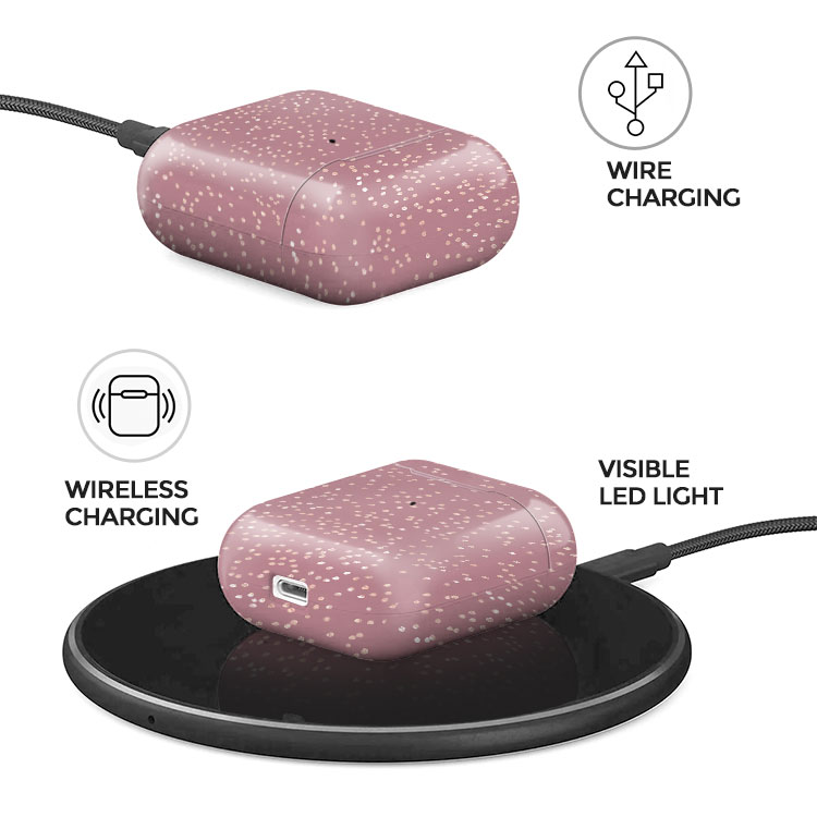 Trendy mauve color as a background for the gold-colored spots creates true beauty. Make your Airpods stand out with our protective and pretty Hot Cocoa case. The spotted pattern adds a touch of luxury to your Airpods, while the case's hard-shell nature offers much-needed protection.