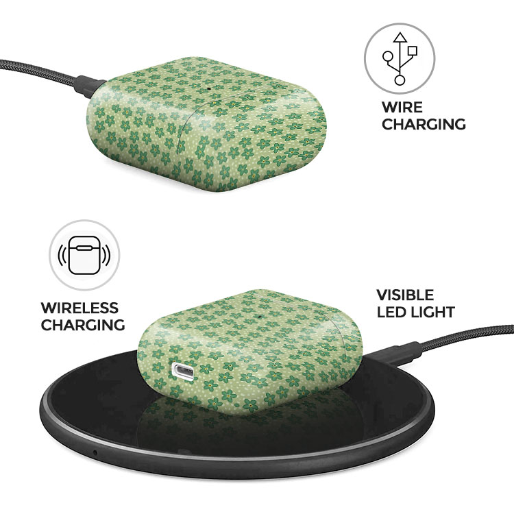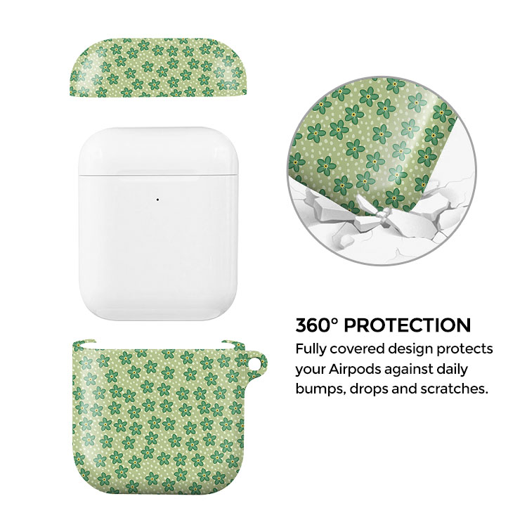 As beautiful as summery-dress and as green as the flowery meadows, the Daydream Airpods case is an absolute must-have for those romantic summer days and strolls around the city! Tiny green flowers meet with a playful dotted pattern fitting into the Y2K craze and create the cutest protective Airpods case!