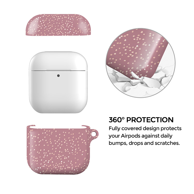 Trendy mauve color as a background for the gold-colored spots creates true beauty. Make your Airpods stand out with our protective and pretty Hot Cocoa case. The spotted pattern adds a touch of luxury to your Airpods, while the case's hard-shell nature offers much-needed protection.