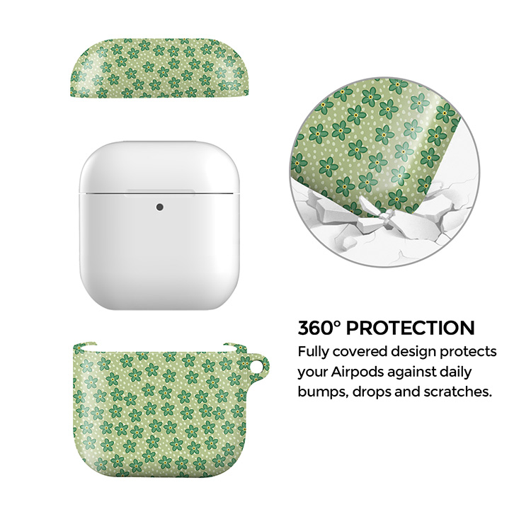 As beautiful as summery-dress and as green as the flowery meadows, the Daydream Airpods case is an absolute must-have for those romantic summer days and strolls around the city! Tiny green flowers meet with a playful dotted pattern fitting into the Y2K craze and create the cutest protective Airpods case!