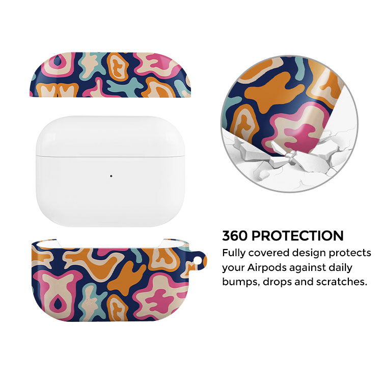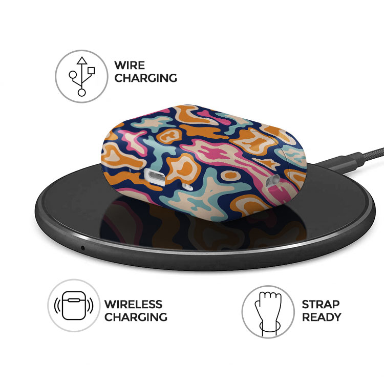 It's time to get funky, wild thing! There are few Airpods case designs as psychedelic and free-spirited as this one. Check out those groovy blues, oranges, and pinks spilling into cool navy organic shapes! It's interesting without being too over the top. Simply put: Midnight Color Splash, with its abstract retro style, is fun, serving color and a bold statement.
