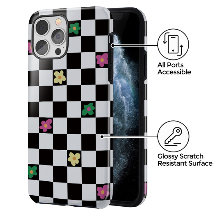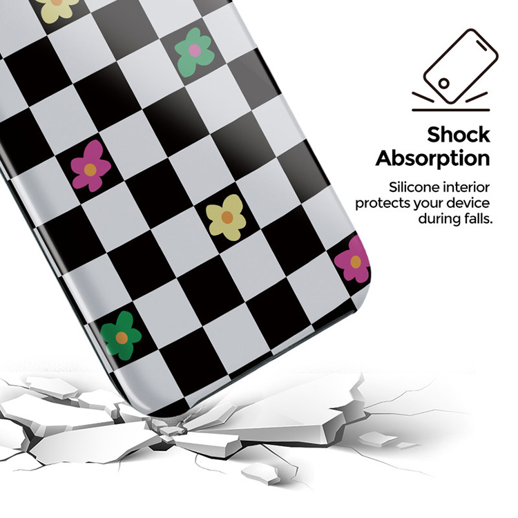Take time to relax with our Lunch Break - phone case. The playful addition of colorful retro flowers to the classical black and white checkered pattern will add that extra pop of color. It will bring that much-needed *oomph* to your phone. With this playful design, you can keep your phone cute and protected!