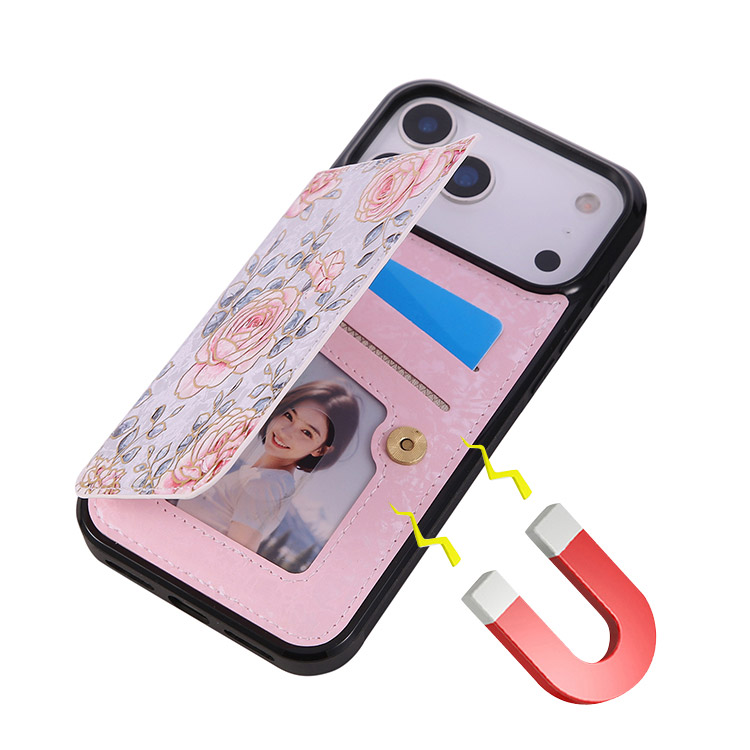 ODILON Casebus Wallet Phone Case, Leather, Flower Pattern Design, Magnetic Clasp Card Holder Shockproof Cover