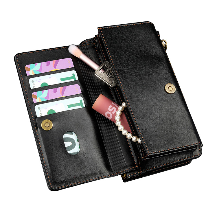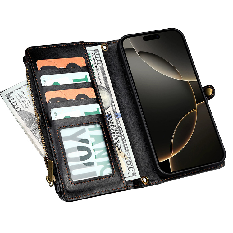 MONICA Casebus Detachable Wallet Phone Case, Magnetic Flip Zipper Cover, with Credit Card Holder & Wrist Strap