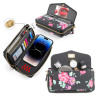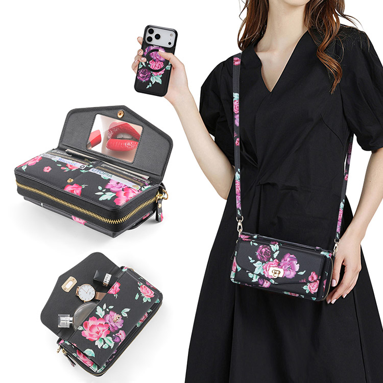 I really love this wallet that I can carry as a crossbody or handheld. It comes with a phone cover for my iPhone that's magnetic and fits right inside the wallet. It has 6 slots for my credit cards, one of which has a window for my driver's license. It all closes with a nice strong zipper. I also like that it has an outside section for 6 more credit cards and a sleeve for larger items. It also has a larger section attached on the other side that closes with a clasp. You can carry coupons, cards, magnifier, etc. or use it for holding your glasses. Originally, I did have questions about its durability. The strap broke on my first purchase after about 6 months. But I liked the wallet so much that I ordered another one. This one seems to be better made. I'm really happy with it.