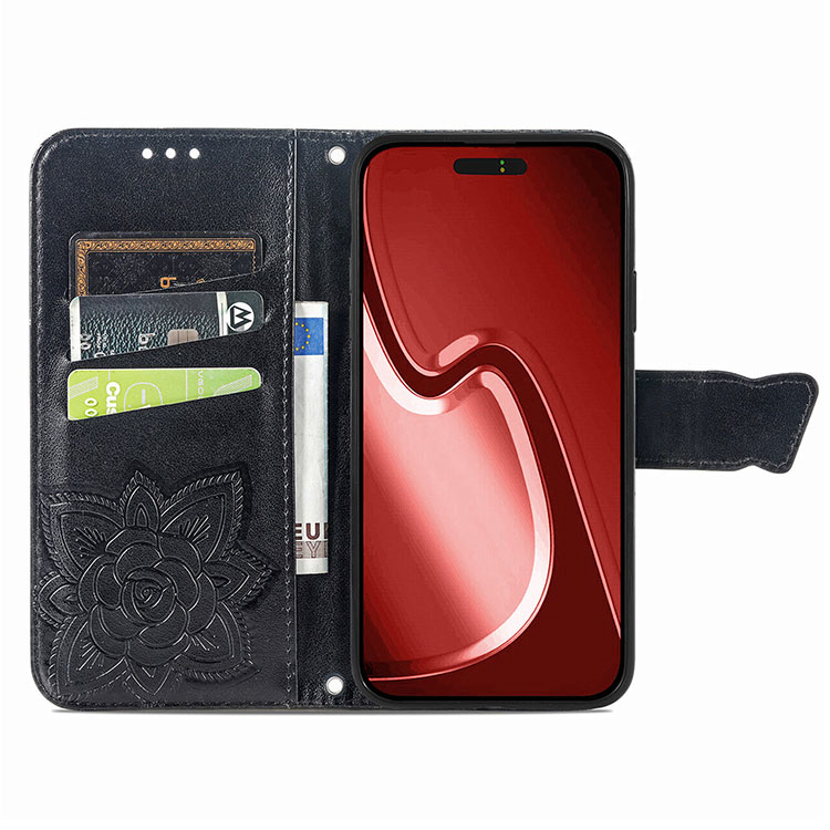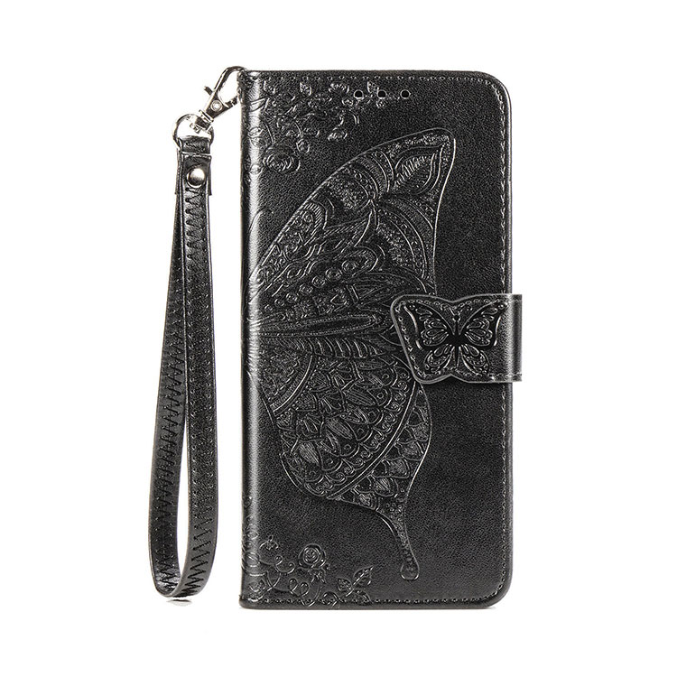 MAISIE Casebus Wallet Flip Phone Case, Emboss Butterfly Flower, Leather Protective Cover, with Wrist Strap & Crossbody Strap