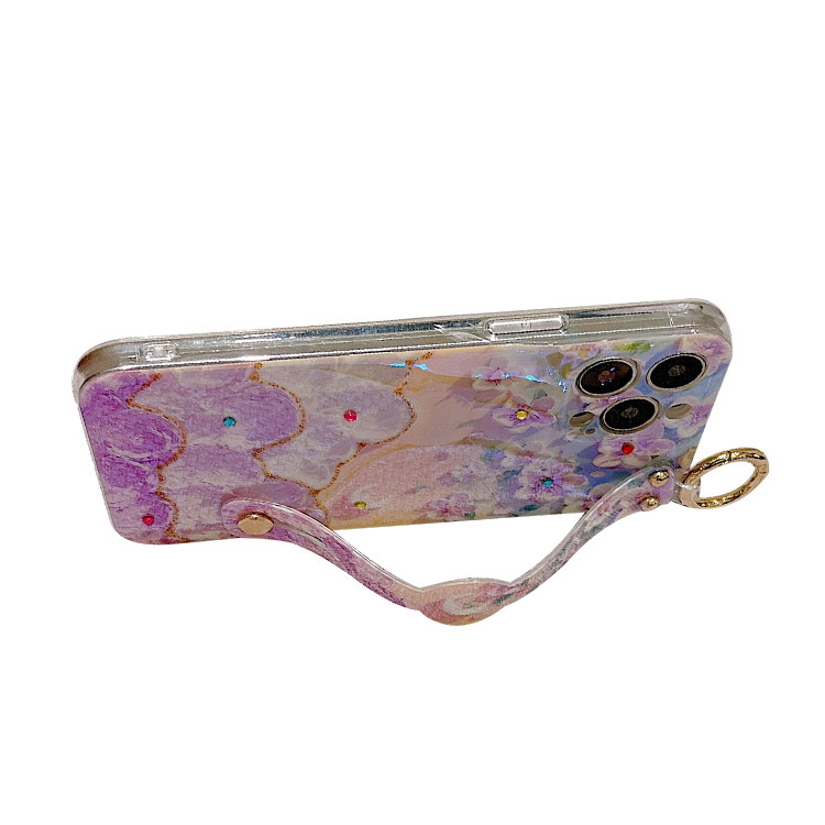 ARIELLE Casebus Fashion Flower Phone Case, Rhinestone Oil Painting Floral Design, with Crossbody Lanyard & Wrist Strap