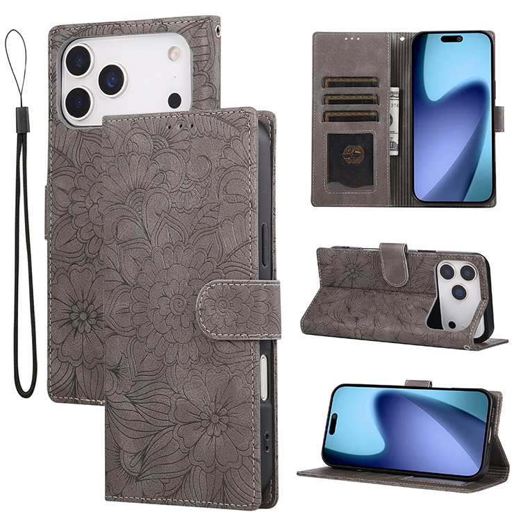 PENVRO Casebus Embossed Flower Flip Wallet Phone Case, with 3 Card Slots plus 1 Cash Pocket Lanyard Soft Leather Kickstand Protective Case
