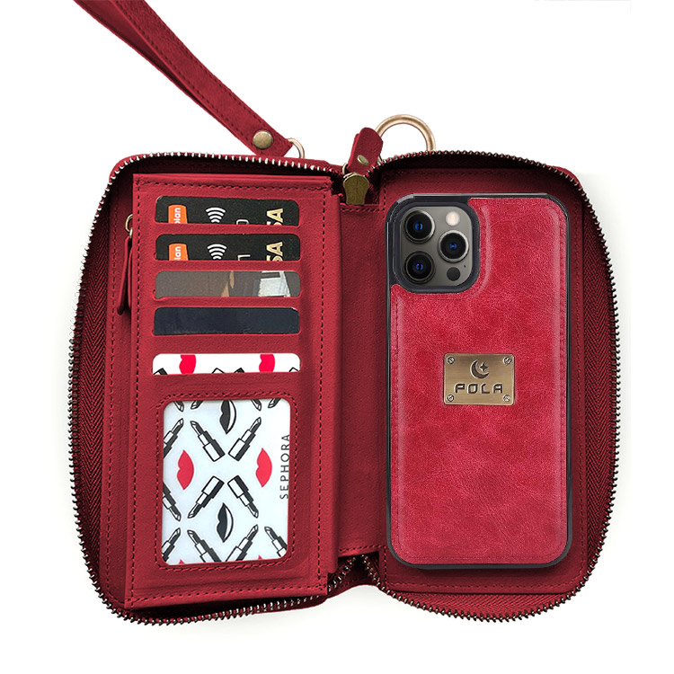 Casebus Crossbody Detachable Phone Wallet Case, Zipper Purse & Card Slots, Wrist Strap Leather Shoulder Bag, Magnetic Back Cover