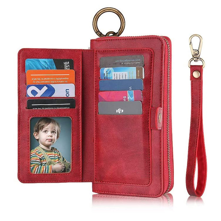 Casebus Classic Detachable Magnetic Wallet Phone Case, 11 Card Slots, 2 in 1, Leather Zipper, Folio Flip, Money Pocket Clutch Case