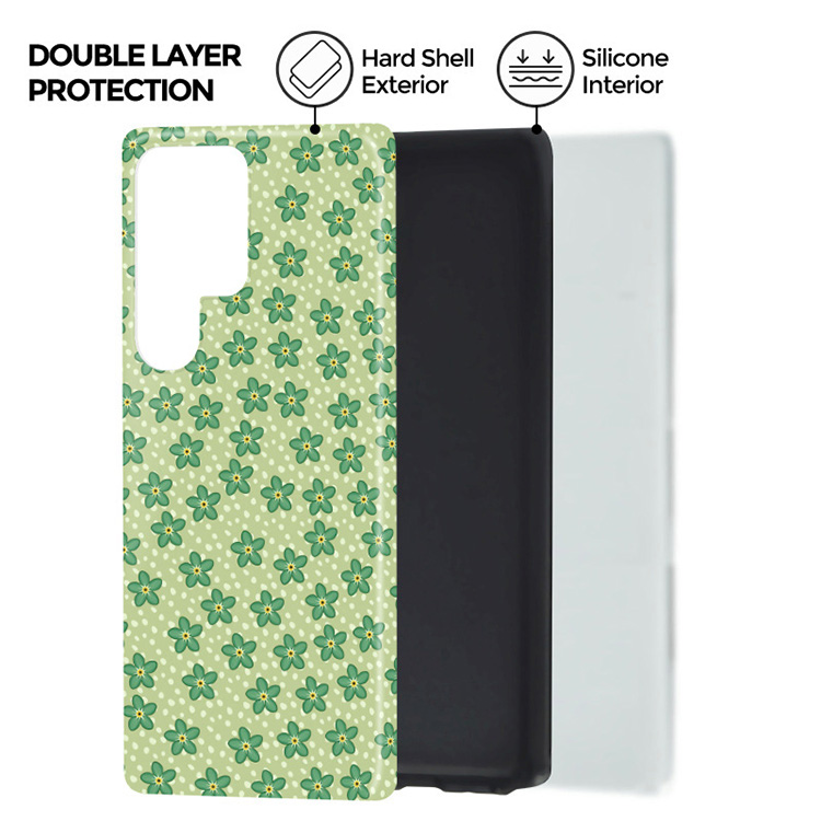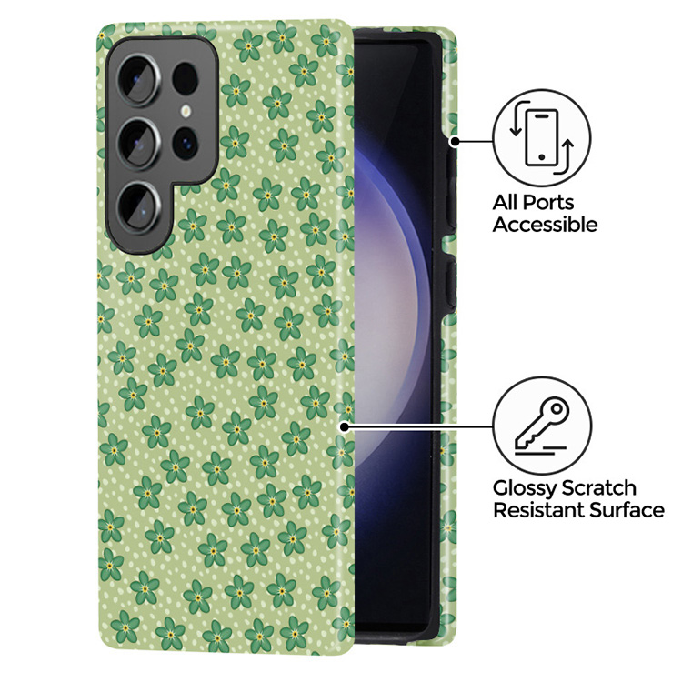 As beautiful as summery-dress and as green as the flowery meadows, the Daydream phone case is an absolute must-have for those romantic summer days and strolls around the city! Tiny green flowers meet with a playful dotted pattern fitting into the Y2K craze and create the cutest protective phone case!