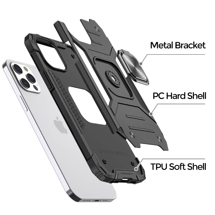 MORELL Casebus Slim Car Mount Ring Phone Case, Heavy Duty Anti Drop Kickstand Shockproof Bumper Protective Cover