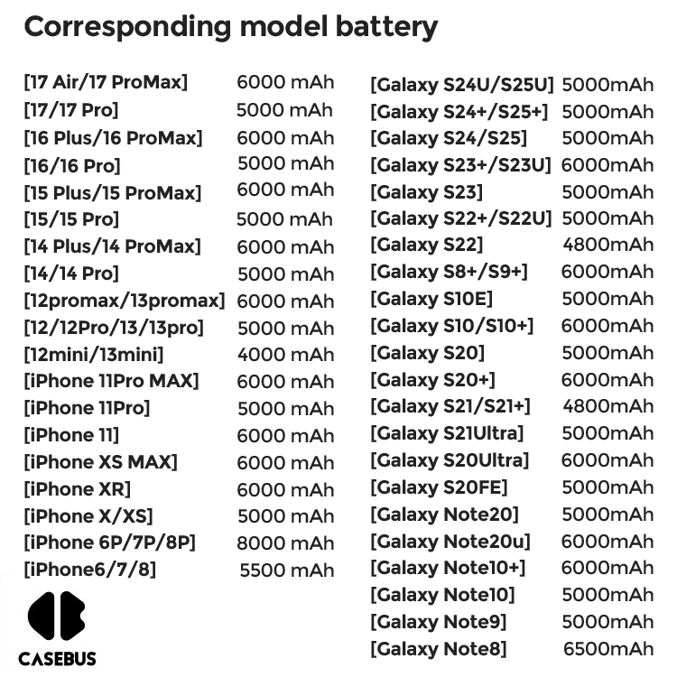 Casebus Classic Battery Phone Case, Portable Charging Case, Support Wireless Headphone, Ultra Slim Portable Rechargeable Battery Pack Charging
