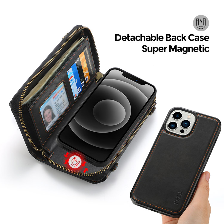 Casebus Crossbody Detachable Phone Wallet Case, Zipper Purse & Card Slots, Wrist Strap Leather Shoulder Bag, Magnetic Back Cover