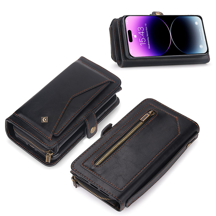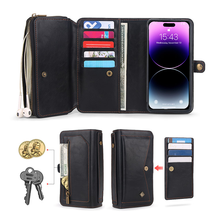 Casebus Classic Detachable Magnetic Wallet Phone Case, 11 Card Slots, 2 in 1, Leather Zipper, Folio Flip, Money Pocket Clutch Case