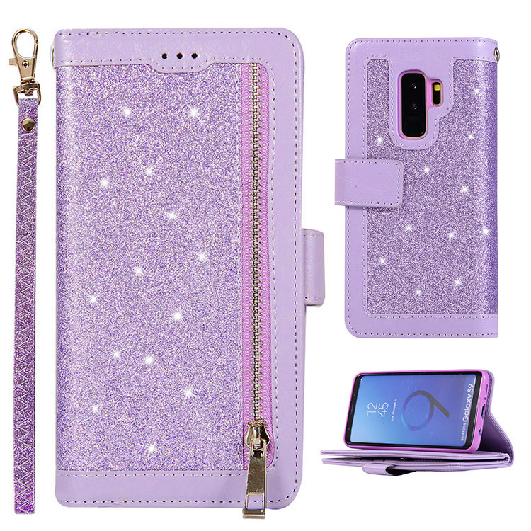 PEABODY Casebus Glitter Bling 9 Cards Slots Wallet Phone Case, Leather Flip, Zipper, Kickstand, Protective Case