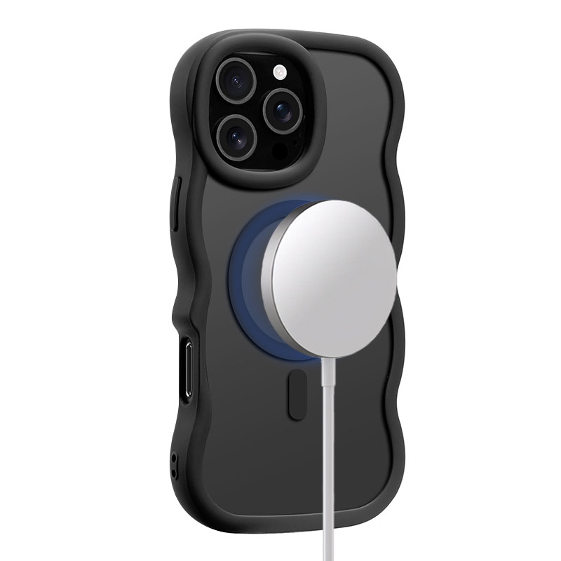 DELIA Casebus Magnetic Phone Case, Support Magsafe, Curly Wavy Frame Design, Hard Translucent Matte Back Cover, Shockproof Protective