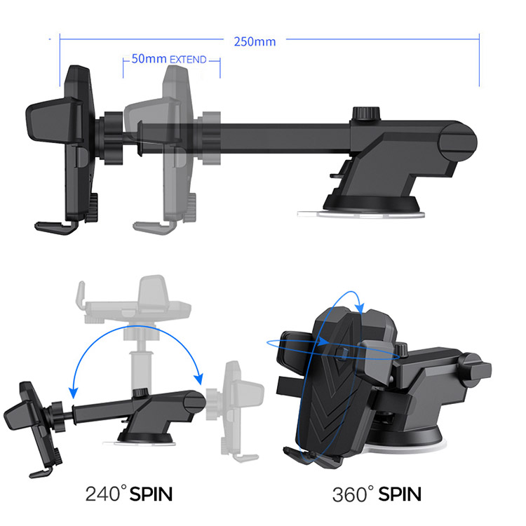[360 Degrees Rotation Car Cell Phone Mount] The 360 degrees ball joint and the adjustable telescopic arm make you able to adjust your phone to any angles and any places. Find a best view for your trip. You can use this mobile phone holder for car vertically or horizontally either, extremely flexible. That is convenient to navigate, pickup phone calls. You can focus on your drive, this mobile phone holder will do the rest of jobs for you.
