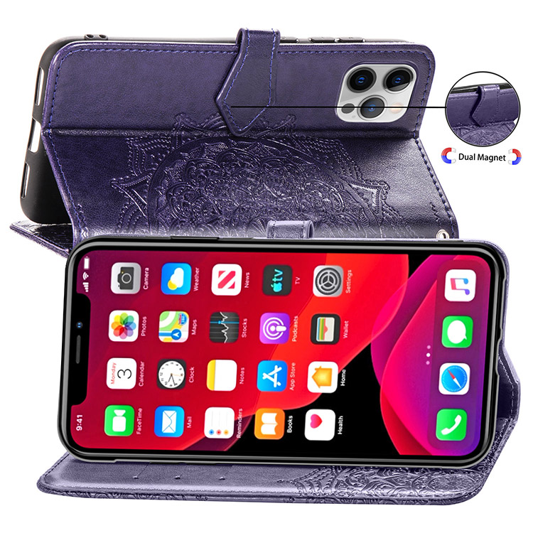 Casebus Mandala Folio Wallet Phone Case, Premium Leather, Credit Card Holder, Flip Kickstand Shockproof Case
