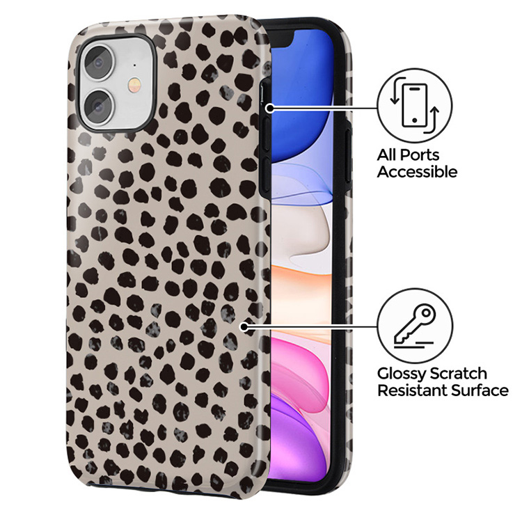 Cute cream color as a background for the unique pattern of asymmetrical black spots creates a real eye-catcher in our Almond Latte phone case. The spotted pattern adds a touch of luxury to your phone, while the case's hard-shell nature offers much-needed protection making it a popular choice between fashion lovers.