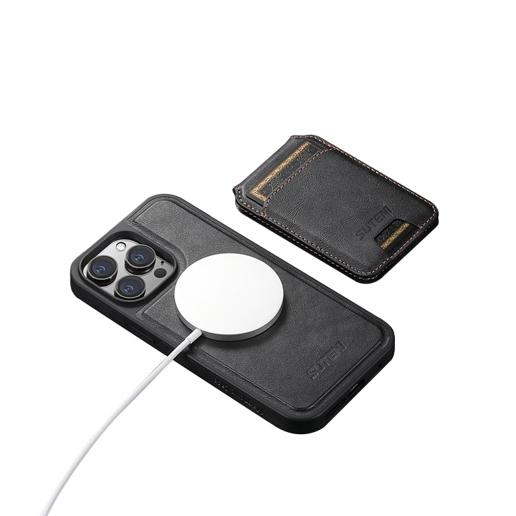 Great leather and very strong magnet. The MagSafe charger works great and the small wallet also serves as kickstand to help keep phone up when watching videos. Wallet slots are small and tight and also this has the new charging port like android.