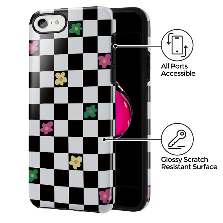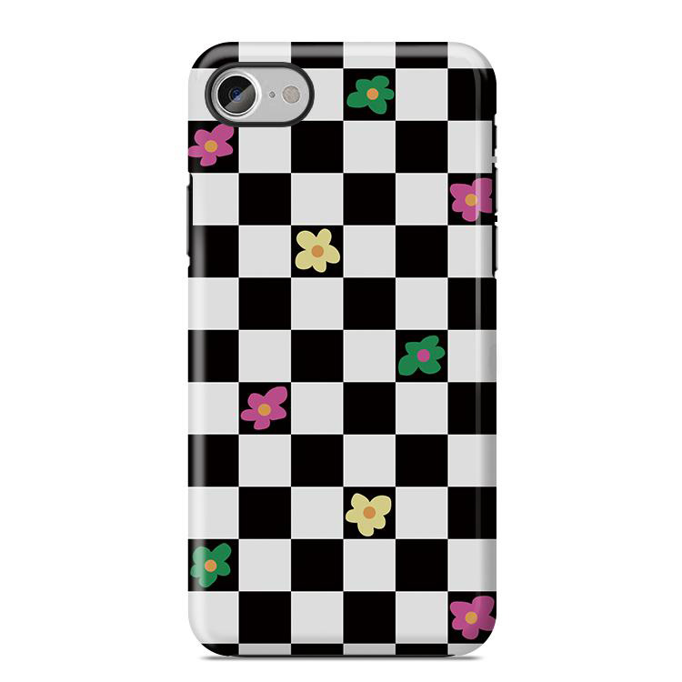 Take time to relax with our Lunch Break - phone case. The playful addition of colorful retro flowers to the classical black and white checkered pattern will add that extra pop of color. It will bring that much-needed *oomph* to your phone. With this playful design, you can keep your phone cute and protected!