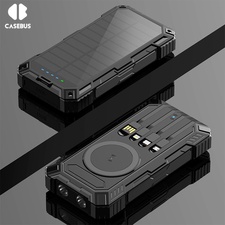 [Built-in Charging Cable] Wireless portable solar charger has built in iPhone, Micro, Type-C and USB cable compatible with iPhone, iPad and other android devices.