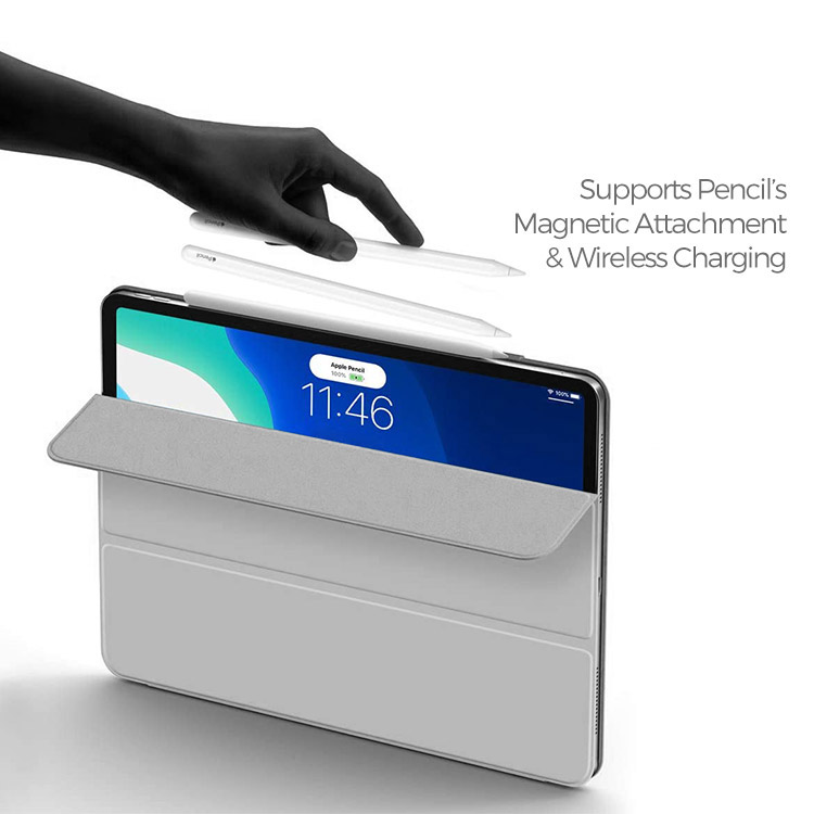 I love this iPad Pro 11 inch case! The magnet holds the protective cover firmly on to the back of the device, and the back camera window fits perfectly. The best thing is that there is a flap which covers the Apple Pencil and secures magnetically so that I don’t have to worry about the Pencil getting accidentally dislodged from the device. The power button and the two volume buttons are easily accessible, as are the 4 speakers and the charging port on the short sides. The material is light, soft to the touch and cleans easily. The case adds very little bulk and weight to the device while providing excellent protection. My only complaint is that the colors are not as vibrant as shown on the website, functionally, the case is perfect for what I wanted.