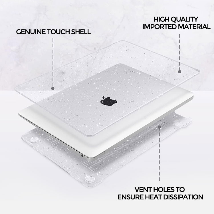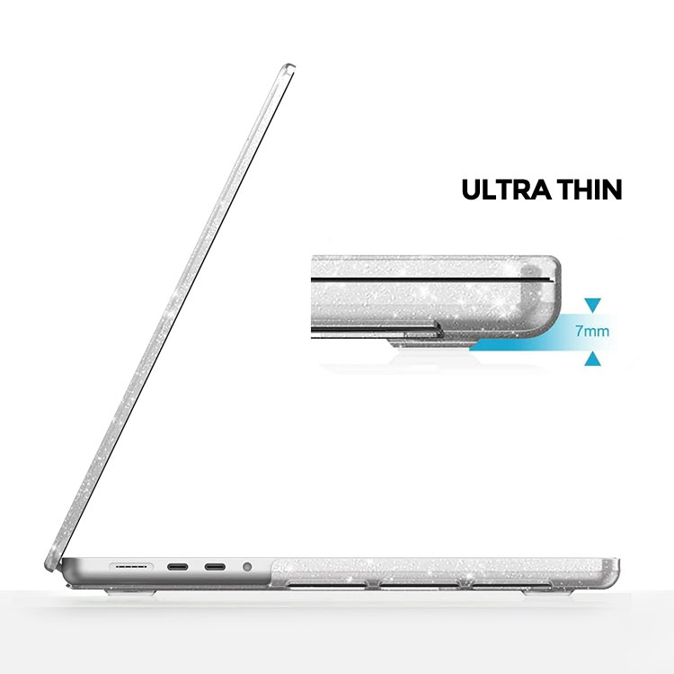 [Glitter Case Design] Made of quality glitter plastic material, transparency is different from color to color. Ultra slim and Sturdy Durable with smooth touch and surface. No cut out design and simple color that makes your Macbook out of the ordinary while keep the original design. Ultra slim light weight case design almost adds no weight to your device.