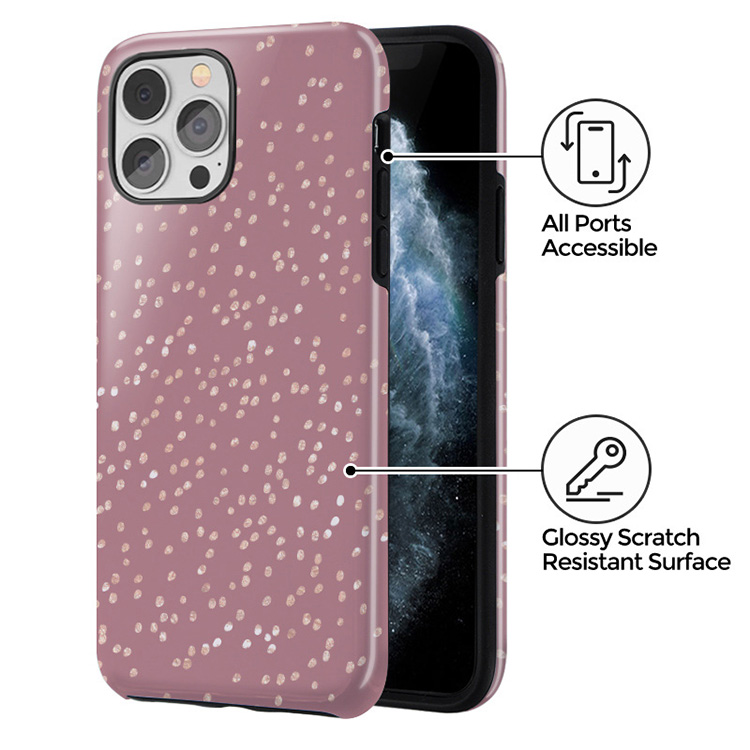 Trendy mauve color as a background for the gold-colored spots creates true beauty. Make your Phone stand out with our protective and pretty Hot Cocoa phone case. The spotted pattern adds a touch of luxury to your phone, while the case's hard-shell nature offers much-needed protection.