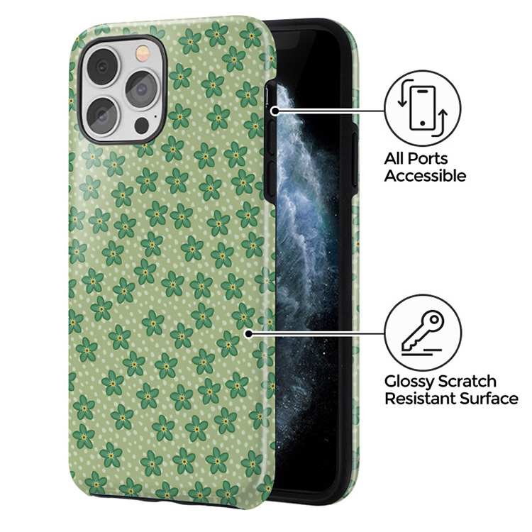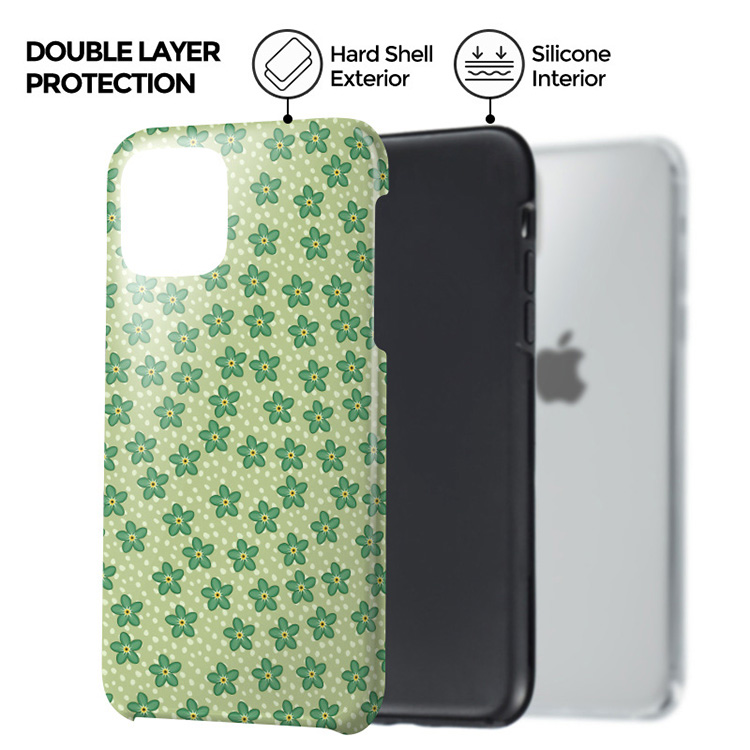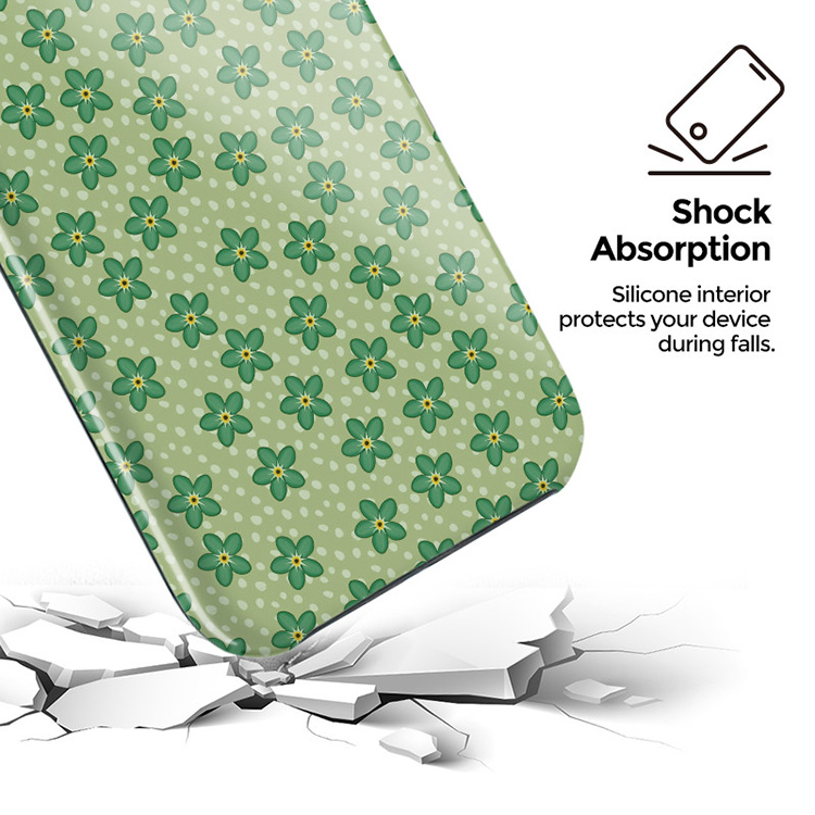 As beautiful as summery-dress and as green as the flowery meadows, the Daydream phone case is an absolute must-have for those romantic summer days and strolls around the city! Tiny green flowers meet with a playful dotted pattern fitting into the Y2K craze and create the cutest protective phone case!