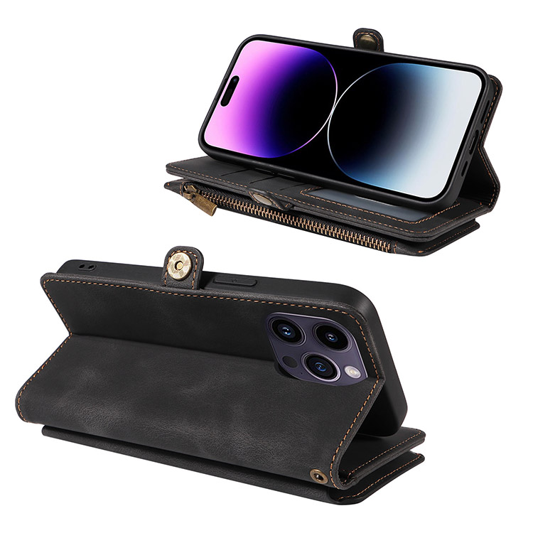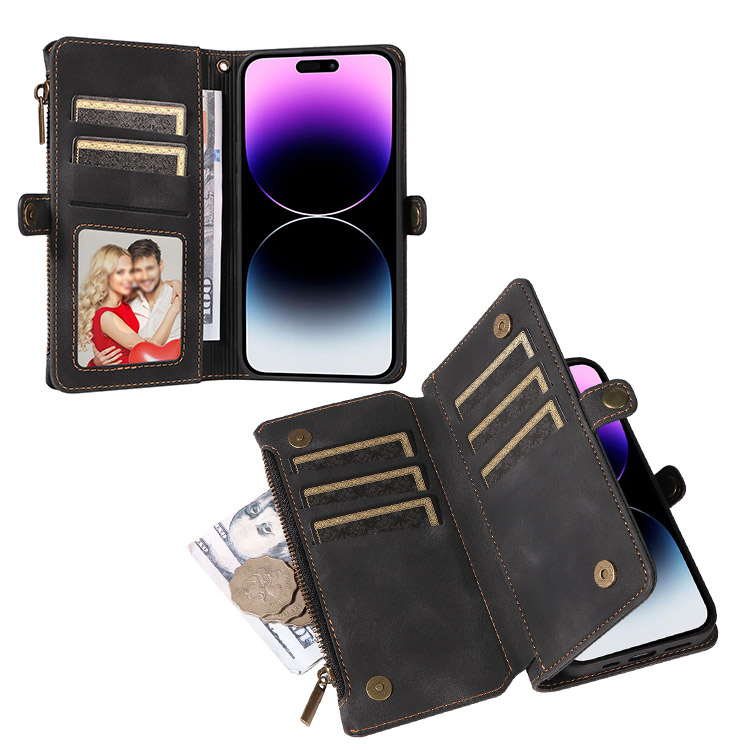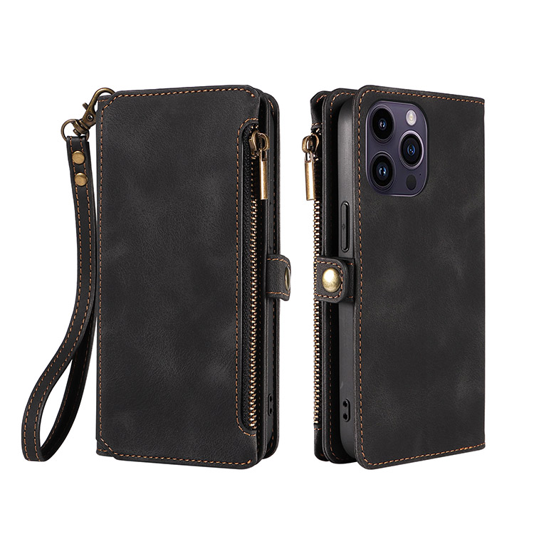 Casebus Classic Flipper Wallet Phone Case, Premium Retro Leather, Folio Zipper, Magnetic Closure, Stand Holder with Wrist Strap Shockproof Case