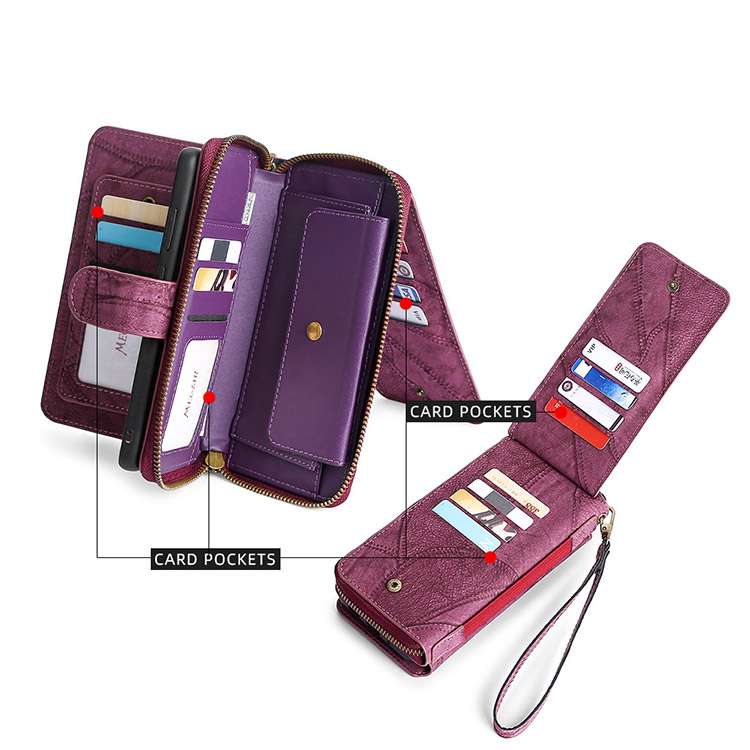 Casebus Multi Functional Wallet Phone Case, 14 Card Slots 3 Purse 1 Zipper 1 Wrist Band 1 Metal Buckle, Wrist Strap Clutch Magnetic Detachable