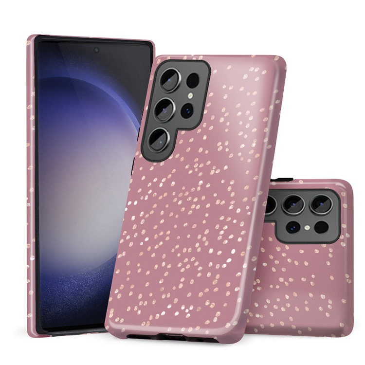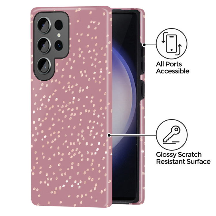 Trendy mauve color as a background for the gold-colored spots creates true beauty. Make your Phone stand out with our protective and pretty Hot Cocoa phone case. The spotted pattern adds a touch of luxury to your phone, while the case's hard-shell nature offers much-needed protection.