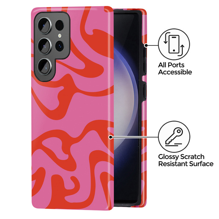 Bold and big take of a liquid swirl can be met in our Ride the Wave phone case. It will not only turn your device into a beautiful art piece but will also keep it safe and sound while encasing it in a design from a 70s art gallery!