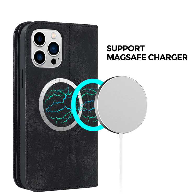 [Support Magsafe Charging] The magnetic wallet case with built-in magnets circle can automatically align with mag-safe charger, 360-degree rotation magnetic fast charge without removing the case.