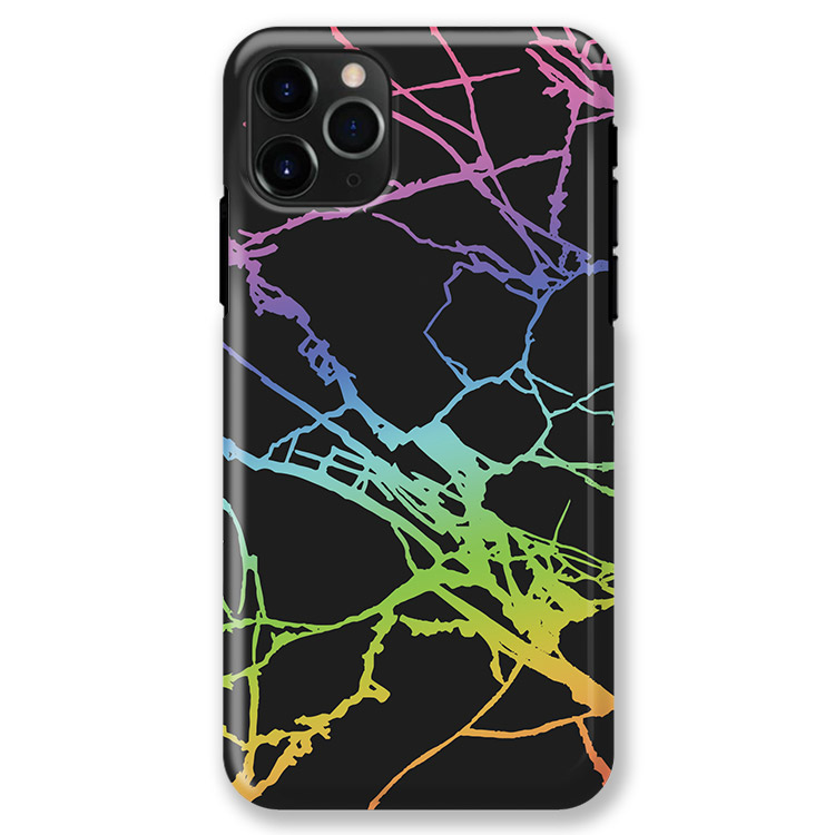 Protective black marble design phone case layered with holographic holo chrome cracks topped with a gloss finish. This design is perfect for a day at work or a night out with your glam girlies! Classy, bold, and stylish, this protective case for iPhones features a fun black marble design with holographic cracks, all topped with a gloss finish. It is great for a night out or a day at the office. This iPhone case has 1.2mm raised edges to provide phone and camera protection while remaining lightweight. In addition, it features flexible TPU sides, which are engineered to minimize impacts and absorb shock. For drops and tumbles, this case helps ensure superior phone protection. This case is specifically designed with customers in mind. A limited-edition case, this product can be ordered for many Apple iPhone products. In addition to flexibility when it comes to compatibility, it is also user-friendly as the case sits securely over the responsive embossed buttons.