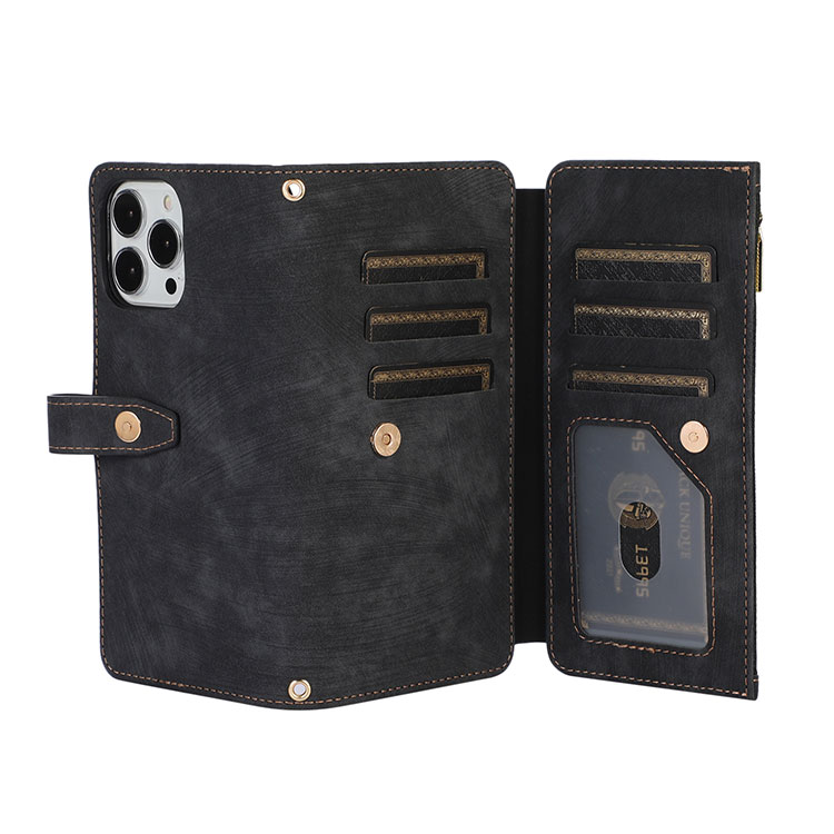 YOANA Casebus Flip Crossbody Wallet Phone Case, With 9 Card Slots Zipper Pocket Retro Leather Hand Strap Kickstand Magnetic Closure Shockproof Cover