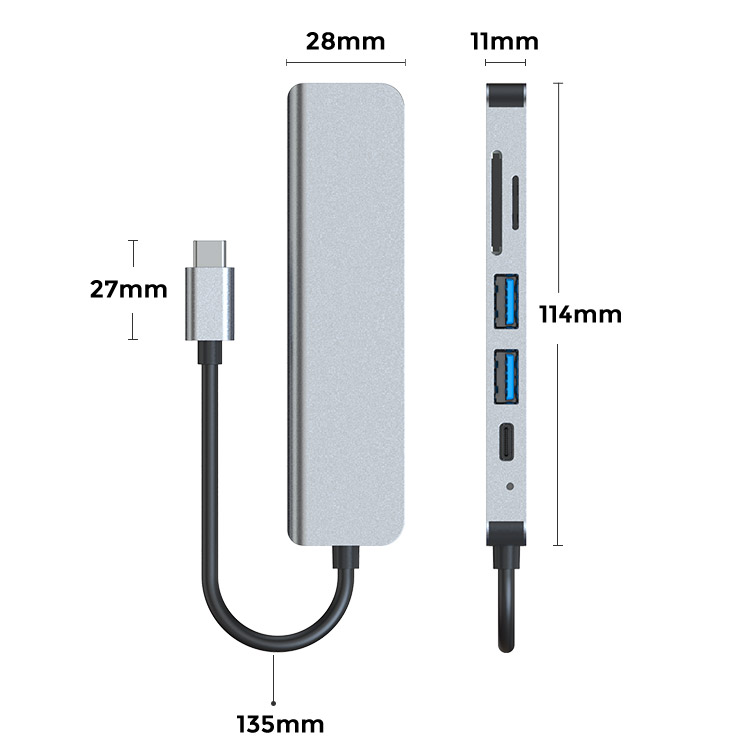 [6 in 1 USB C HUB] This plug-and-play USB C Hub adapter includes 1 4K@30Hz HDMI output port, 1 USB Type-C Female PD Charging port, 1 USB 3. 0, 1 USB 2.0, 1 TF SD card slot, 1 SD card slot. Extremely compact design with all the features you need.