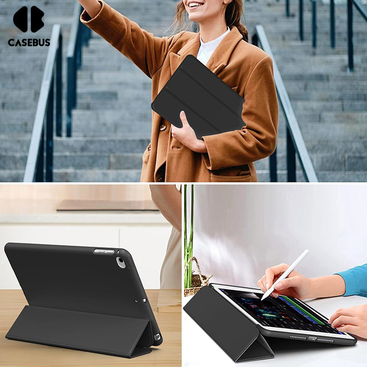 Casebus Smart Flip Case for iPad, with Pencil Holder, Slim Trifold Stand, Shockproof Protective Cover