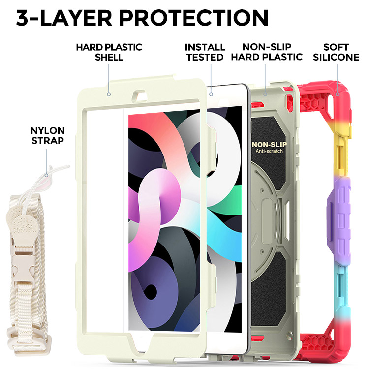 [Multi-Layers Protection] The case is made of hard plastic shell, hard PC inner and soft silicone to provide good protection for iPad in daily use.