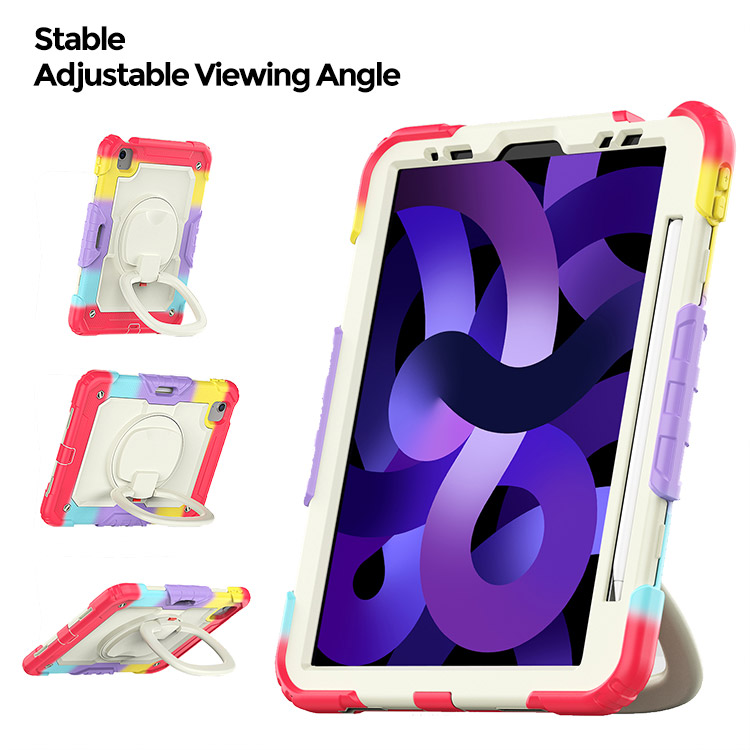 The case is just what my great grandson wanted and he loves it. The large ring is ideal for propping iPad in both portrait or landscape mode. Additionally, it is perfect as a carrying handle. Highly recommend this case for others. One negative is you need to order the screen protector separately for this case. Minor, but just stating a fact.