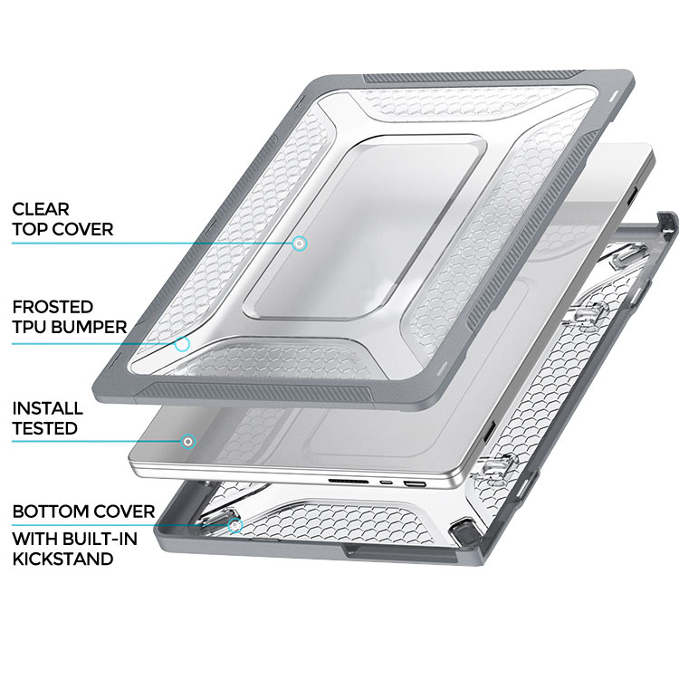BRYDEN Casebus Case for MacBook, Honeycomb Shock Absorbing Protective & Slim Rubberized TPU Bumper, Folding Stand Cover