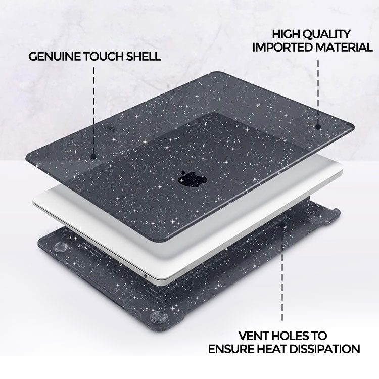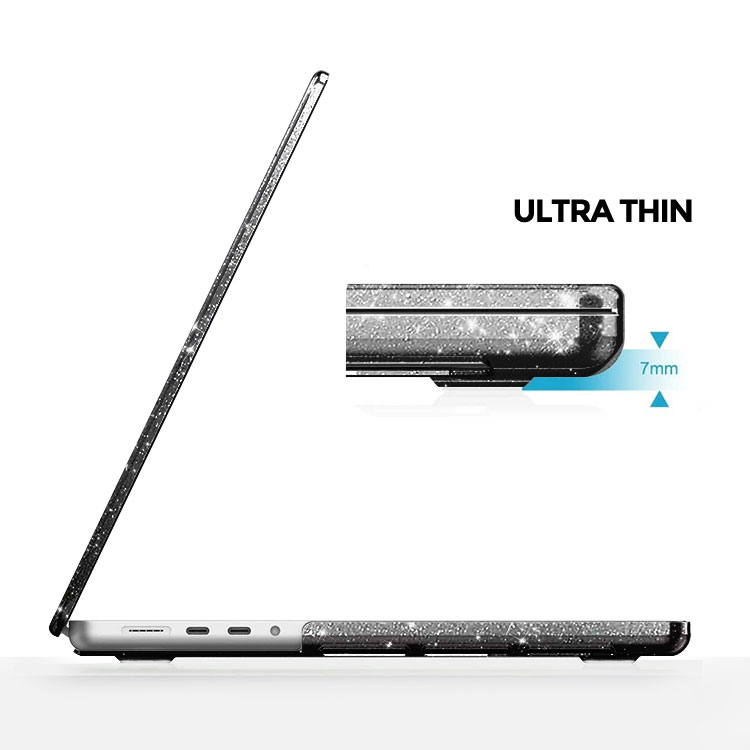 [Glitter Case Design] Made of quality glitter plastic material, transparency is different from color to color. Ultra slim and Sturdy Durable with smooth touch and surface. No cut out design and simple color that makes your Macbook out of the ordinary while keep the original design. Ultra slim light weight case design almost adds no weight to your device.