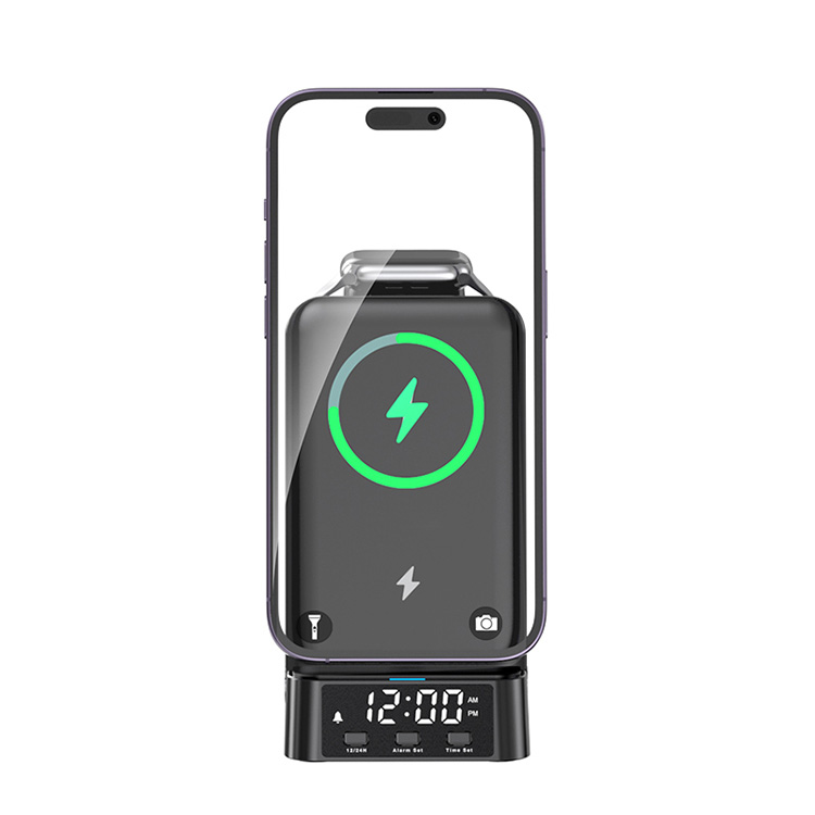 [Alarm Setting & Sleep-Friendly] Alarm clock charging station can be placed on the nightstand to check the time and set the alarm. With the upgraded smart LED panel, you can clearly see the clock numbers no matter what angle you look at, and the soft light of the clock will not affect your sleep.