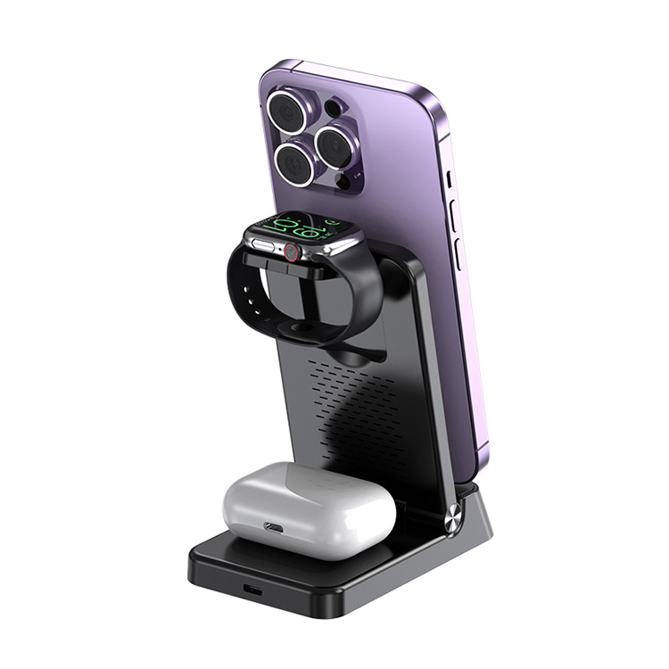 [4 in 1 Wireless Charger] This foldable charging station can wirelessly charge iPhone, Samsung, Apple Watch, Air Pods and more wireless charging phone earphones.