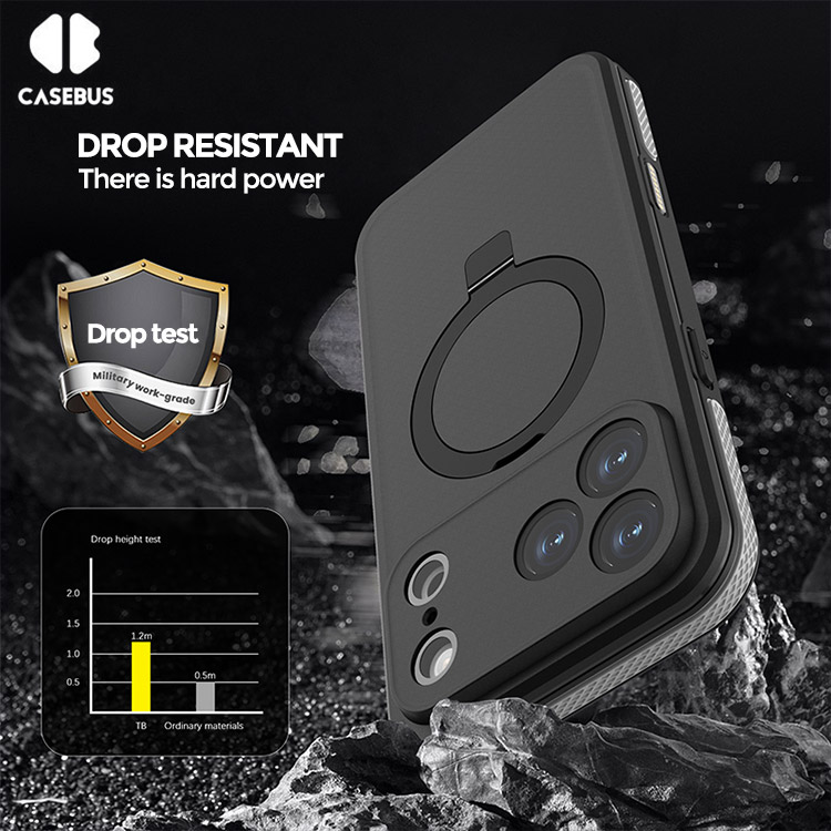 Casebus Heavy Duty Magnetic Phone Case, Support Magsafe, with 360° Rotating Ring Kickstand & Slider Camera Lens Cover