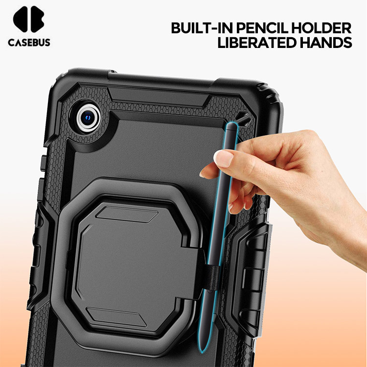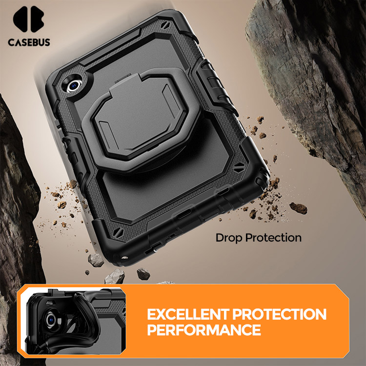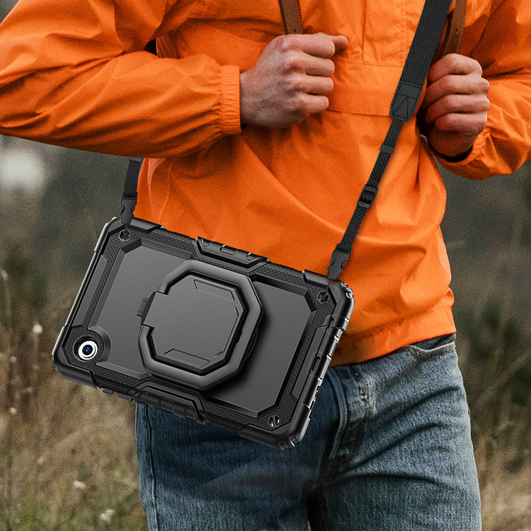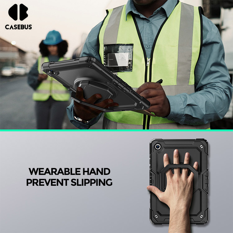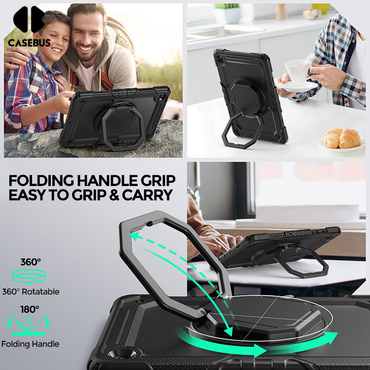 [Convenient Handle & Adjustable Shoulder Strap] The case is designed with 360 rotating and folding handle. The handle can be use as kickstand, offering multiple viewing and typing angles. Brings more convenience to your life. The shoulder strap can free our hands.Not only that, it can be hung in any places. For example, hanging on the back seat of a car to creates a mini theater for kids.
