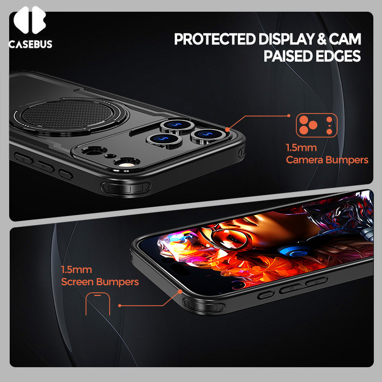 [with 360°Rotatable Kickstand] Integrated precision iron ring enables frictionless angle adjustment, providing stable viewing at any position—ideal for office, travel, and bedtime streaming.