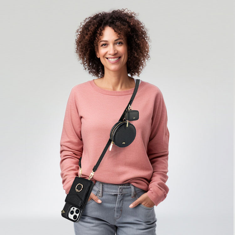 [What You Get] Smartphone wallet case *1; Round bag *1 ( Size: 4.1''*4.1''*1.6'' ); Mini Rectangular Pouch *1 ( Size: 2.75''*2.16''*1.56''); Adjustable crossbody long strap *1 ( Size: L: 40.6'' to 51.6'' clasp/ W: 0.71''); Friendly & Fast customer service.